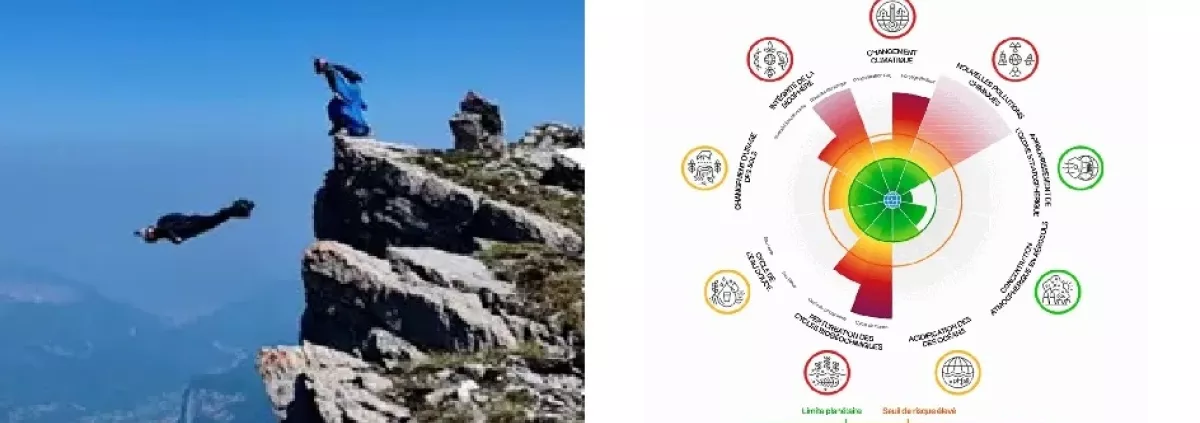 Au travers de ses deux activités, il compare son respect strict des lois de la physique, les contraintes du réel et son analyse rigoureuse des risques par nécessité vitale dans son loisir de sport extrême avec le développement inconséquent de nos sociétés humaines qui dépassent largement les limites planétaires,.au mépris des alertes des scientifiques, du fait incontestable que nous n'aypns qu'une seule planète à disposition