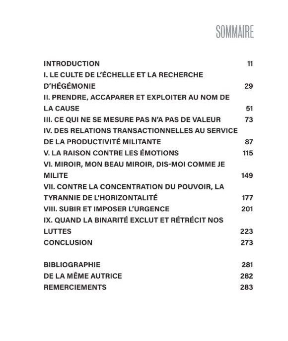 Le livre est plein d'exemples concrets d'organisations et de citoyen·nes de différents pays mobilisé·es dans diverses causes. Il allie réflexions théoriques et pratiques qui rend la lecture claire bien que le livre soit dense. Chaque chapitre est lié à un symptome que Mme Durieux a identifié.