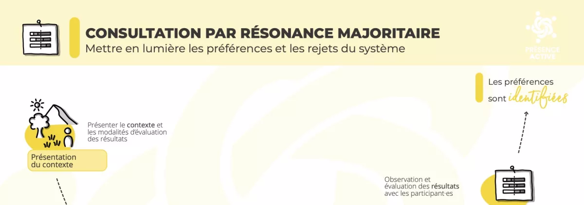 Dans le cadre d'Alternaitba Léman 2026, lors de notre première session de 3 heures, nous avons utilisé le processus de consultation par résonance majoritaire ouverte de Présence Active pour 3 consultations préparatoires.